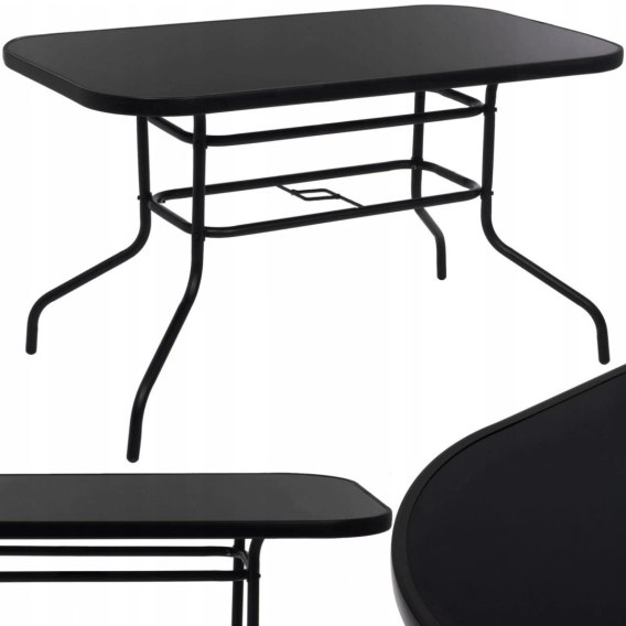 Stół ogrodowy szklany 120x70 cm na taras ogród szkło hartowane czarny