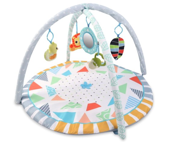 Dzięki miękkim, usztywnianym pałąkom, na których zawieszone są kolorowe zabawki, dziecko może ćwiczyć wzrok, chwytanie i koordynację ruchową.