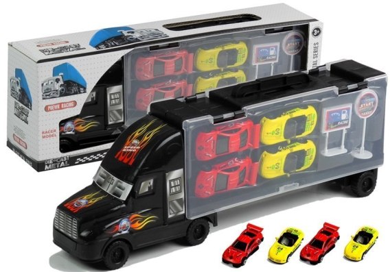 Duża ciężarówka, może służyć sama do zabawy lub jako przewoźnik mniejszych autek,