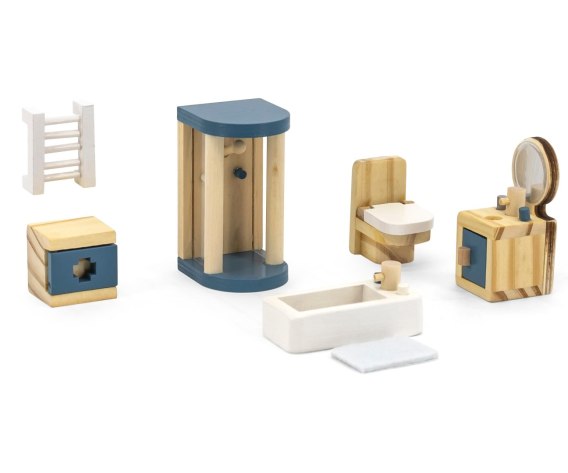 Uroczy zestaw drewnianych mebelków do domku dla lalek marki PolarB by Viga to doskonały sposób na rozwijanie wyobraźni i kreatywnej zabawy dzieci. Komplet przedstawia łazienkę i zawiera wszystkie niezbędne elementy wyposażenia, dzięki którym każda lalka będzie mogła zadbać o higienę i relaks po długim dniu.