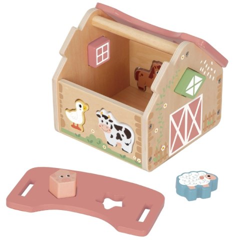 Zabawa sorterem polega na dopasowywaniu drewnianych zwierzątek i kształtów do odpowiednich otworów w ścianach stodoły. Dzięki temu maluch nie tylko ćwiczy koordynację wzrokowo-ruchową, ale również uczy się cierpliwości, skupienia i rozwiązywania prostych problemów. Dziecko uczy się poprzez działanie - a to właśnie najlepszy sposób na trwałe zdobywanie wiedzy.