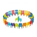 • Krzesełka posiadają różne kształty oraz aż 7 kolorów (niebieski, błękitny, pomarańczowy, żółty, zielony, fioletowy i czerwony).