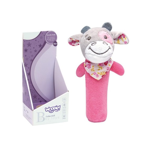 Pluszowy Byczek od marki Woopie uspokoi oraz uśpi Twoje dziecko. Zabawka jest przystosowana dla niemowląt, posiada budowę idealną dla rączek niemowlaka oraz jest wypełniona miękką watą. Dodatkowo, sam rodzic może trzymać za trzon i bawić się z dzieckiem. Sprawdza się idealnie jako gryzak, posiada również elementy jak metki, które dzieci uwielbiajągryźć i dotykać. Po ściśnięciu trzonu, pluszak wydaje dźwięk piszczałki - pozwoli to na rozbawienie i zwrócenie uwagi dziecka. Po pocieraniu trzonu, zabawka wydaje szelesty. Miękki w dotyku byczek stanie się przyjacielem każdego dziecka już od najmłodszych lat. Idealnie odnajduję się w roli pluszaka potrzebnego do zasypiania. Dodatkowo zabawkę można bezpiecznie oraz łatwo czyścić. Gryzak od najmłodszych lat rozwija sprawność rączek (mała motoryka) oraz zmysły - dotyk, słuch i wzrok.