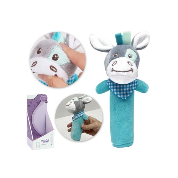 Pluszowy Osiołek od marki Woopie uspokoi oraz uśpi Twoje dziecko. Zabawka jest przystosowana dla niemowląt, posiada budowę idealną dla rączek niemowlaka oraz jest wypełniona miękką watą. Dodatkowo sam rodzic może trzymać za trzon i bawić się z dzieckiem. Sprawdza się idealnie jako gryzak, posiada również elementy jak metki, które dzieci uwielbiajągryźć i dotykać. Po ściśnięciu trzonu, pluszak wydaje dźwięk piszczałki - pozwoli to na rozbawienie i skupienie dziecka. Po ocieraniu trzonu zabawka wydaje szelesty. Miękki w dotyku osiołek stanie się przyjacielem dziecka już od najmłodszych lat, który towarzyszy mu podczas snu. Idealnie odnajduję się w roli pluszaka do zasypiania. Dodatkowo zabawkę można bezpiecznie oraz łatwo czyścić. Gryzak od najmłodszych lat rozwija sprawność rączek (mała motoryka) oraz zmysły- dotyk, słuch i wzrok!
