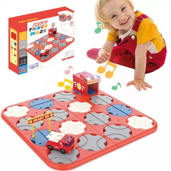 WOOPIE Interaktywny Tor Samochodowy Straż Pożarna Układanka + Elektryczne Auto 34 el.