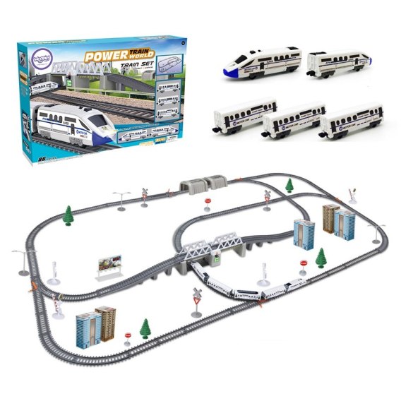 - - w skład zestawu wchodzi: pociąg Pendolino - 5-składowy, ruchomy, podnoszony most, tunel kolejowy, znaki, atrapy budynków mieszkalnych, szlabany, drzewka, latarnie,