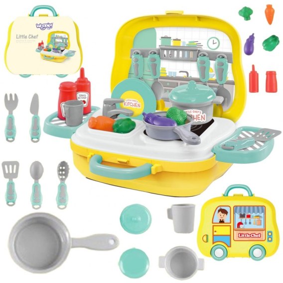 WOOPIE Przenośny Zestaw Małego Kucharza 2w1 Kuchnia w Walizce 18 akc