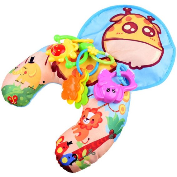 Poduszka stabilizacyjna sprawdzi się podczas opieki nad maleństwem. Poduszka w rewelacyjnej grafice z szeleszczącą podkładką i kolorowymi grzechotkami zapewni wiele wesołej zabawy każdemu maluszkowi.