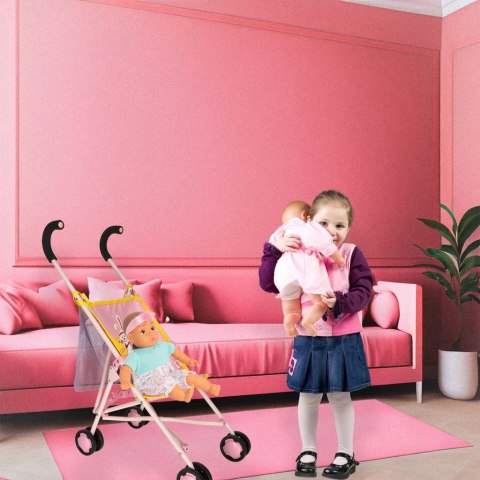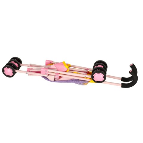 Uroczy wózek dla lalek to idealna zabawka dla Twojego malucha uwielbiającego swojego lalki i marzącego o wcielaniu się w rodzica. Spacerówka może i przypomina prawdziwy wózek, ale jest ona dużo mniejsza i lżejsza. Co więcej, wózek jest dopasowany do wzrostu dziecka i posiada piankowe uchwyty sprawiające, że prowadzenie jest łatwe i wygodne nawet dla najmłodszych „rodziców". Na wózku dodatkowo znajduje się torba z siatki, która pozwala na zabranie innych zabawek czy akcesoriów niezbędnych do opieki nad lalką. Wózek posiada blokadę, zabezpieczającą przed samoczynnym złożeniem.