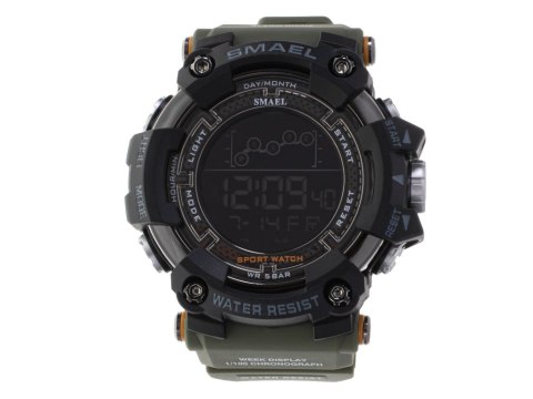 ZEGAREK MĘSKI MILITARNY WODOODPORNY LED SMAEL ZIELONYDobrze jest kontrolować czas, przynajmniej w takim stopniu, na jaki pozwala zegarek. Nie pomoże cofnąć się w czasie, ale przynajmniej pozwoli nie spóźnić się na spotkanie! Męski zegarek militarny marki Smael bez wątpienia doda Ci pewności siebie! Szerokość tarczy wynosi aż 6 cm, dzięki czemu wyświetlane informacje są zawsze widoczne, a noszenie zegarka okazuje się wyjątkowo wygodne! Jedną z ważniejszych funkcji zegarka jest jego wodoodporność - sprawdzi się nie tylko w trakcie deszczu, ale również świetnie nada się dla osób lubiących spędzać czas nad wodą. Bez wątpienie nie zawiedzie rybaków i wszystkich innych outdoorowców!Do zasilania zegarka wykorzystana została pojemna bateria CR2025, zapewniając długi czas pracy i bezobsługowe korzystanie! Duża regulacja długości paska, wynosząca maksymalnie aż 24 cm, pozwoli dopasować zegarek niezależnie od Twojej budowy ciała, nawet jeśli jesteś potężnym wikingiem! Dodatkowo szerokość paska to 22 mm, co zapewnia wysoki komfort korzystania!Design idealnie wpasuje się w potrzeby mężczyzn i podkreśli ich charakterystyczne cechy. Zastosowane materiały są wyjątkowo wytrzymałe, co zapewnia naprawdę satysfakcjonującą trwałość, a zegarek przeżyje z Tobą niejedną ciekawą przygodę! Produkt został zapakowany w estetyczne opakowanie, dzięki czemu idealnie sprawdzi się jako prezent!