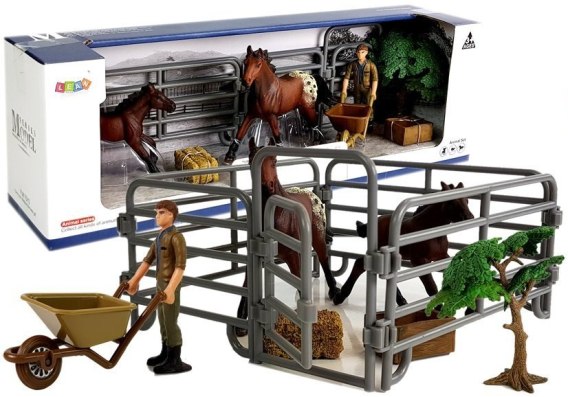 Zestaw Figurek Zwierzęta na Farmie Konie Źrebie Rolnik z Akcesoriami