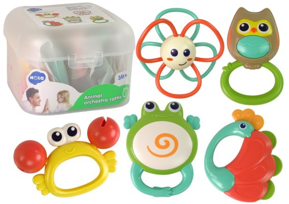Zestaw Grzechotek Pudełko Krab Sowa 5 Sztuk Kolorowe