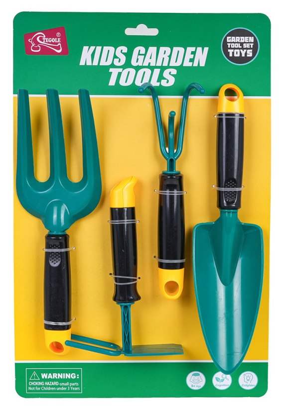 Zestaw bezpiecznych narzędzi ogrodniczych dla dzieci od trzeciego roku życia. Zestaw zawiera wszystko, co niezbędne do pracy w ogrodzie. Narzędzia są bezpieczne, nie posiadają ostrych krawędzi, a ich rozmiar idealnie dopasowano do małych rączek. Dodatkowo rękojeści narzędzi można zdejmować. Zestaw wykonany w uniwersalnej kolorystyce, idealny zarówno dla chłopców, jak i dziewczynek.