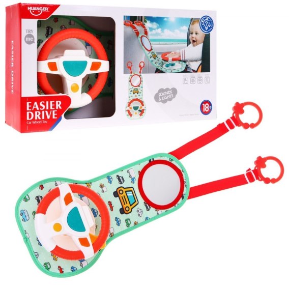 Interaktywny zestaw dla dzieci już od 18 miesiąca życia umili dziecku czas podczas podróży. Twój maluch poczuje się jak prawdziwy kierowca i będzie mógł naśladować ruchy rodzica podczas jazdy. Zestaw przeznaczony jest tylko dla dzieci siedzących przodem do kierunku jazdy, nie należy używać w przypadku niemowląt skierowanych tyłem do kierunku jazdy. Zestaw łatwo przyczepia się do zagłówka siedzenia. Zabawka stymuluje rozwój zmysłów dziecka poprzez dźwięki i światła. Zabawka zasilana jest bateriami typu 3 x AA (w zestawie). |