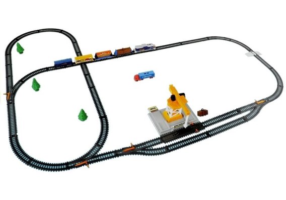 Wieloelementowy zestaw, którego scenariusz toczy się w okolicy stacji przeładunkowej, pozwoli na rewelacyjną i długą zabawę. Każde dziecko odnajdzie w nim zarówno pociąg, który podczas jazdy oświetla swą drogę, jak i ciekawe akcesoria dekoracyjne, pozwalające na udekorowanie trasy według własnego, indywidualnego pomysłu. Po przejechaniu bardzo długiej trasy pociąg dojeżdża na stację załadunkową, na której umieszczony jestżuraw wieżowy, służący do rozładunku bali drewna z wagonu.