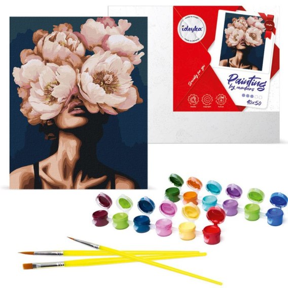 - Gotowe do malowania płótno z eleganckim motywem „Tajemnica piwonii ", podzielone na pola oznaczone numerami